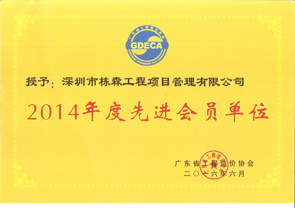 廣東省工程造價協會2014年度先進會員單位